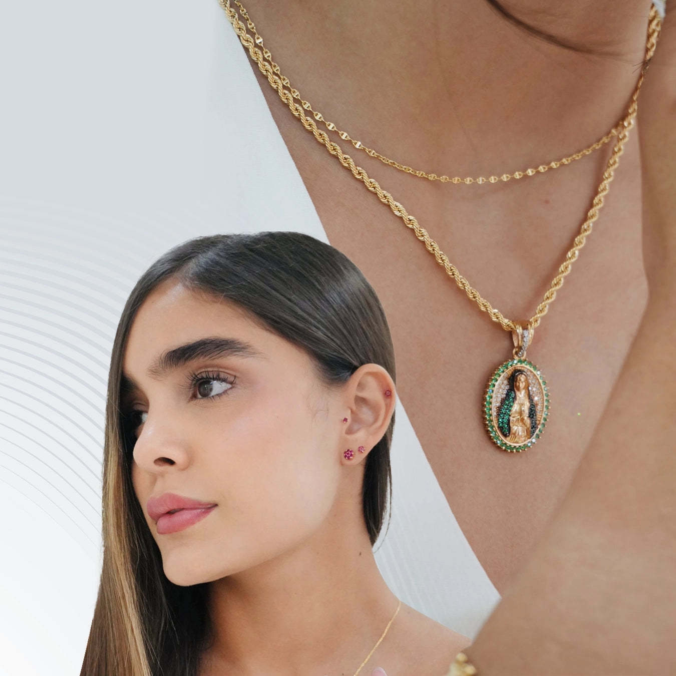 atemporal en cada detalle: cadena con dije, anillo y pulsera tipo tenis,
